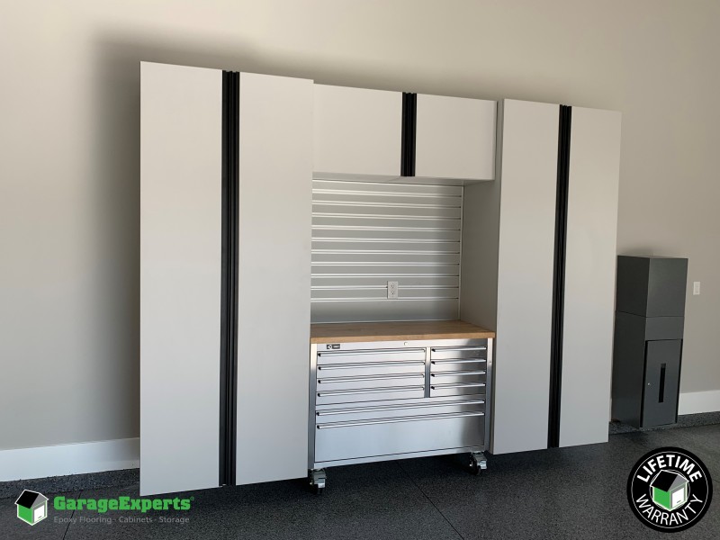 Residential Garage Epoxy Flooring And Cabinet Storage